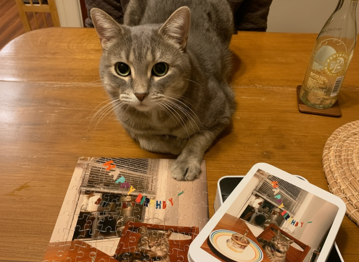 Your puzzle arrives in a beautiful keepsake metal tin featuring your pet’s photo right on the lid. It’s perfect for gifting, framing, or cozy nights spent puzzling with family and your best friend by your side.