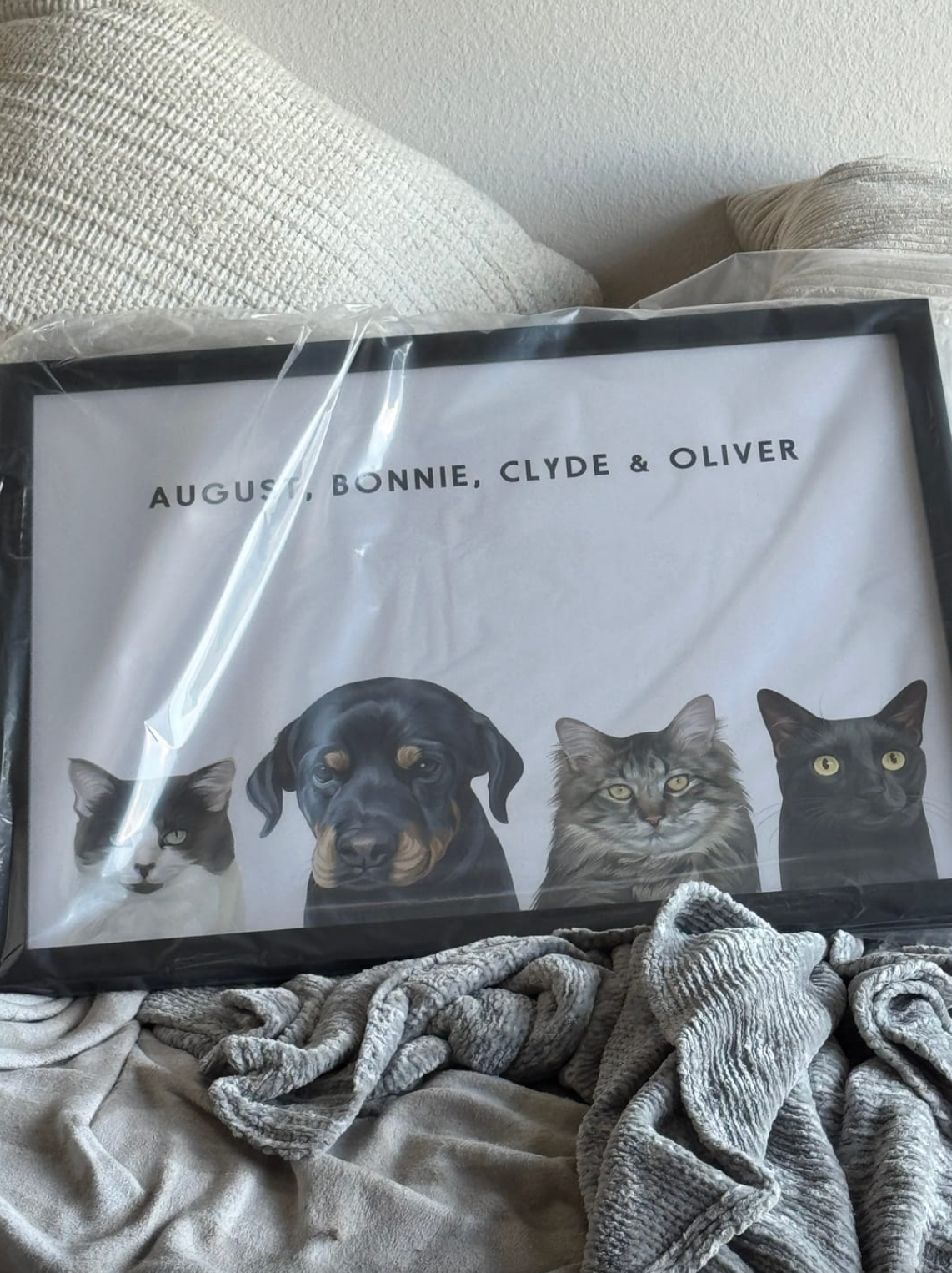 • “Such a beautiful tribute to our cat, Luna. The portrait captures her expression so well. The packaging was careful and it arrived ready to hang.”