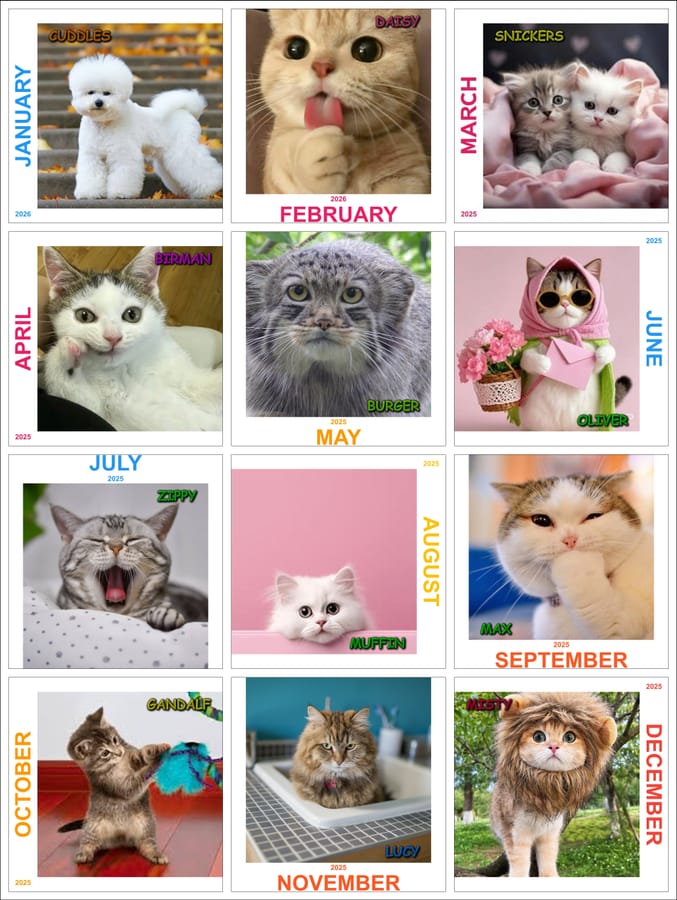 A personalized calendar featuring Cuddles. This custom calendar is created from your uploaded photo and includes a beautiful 12-month layout.